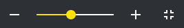 Durch diesen Schieberegler kann die Größe der Zeichenfläche angepasst werden. Schiebt man den Regler nach rechts, wird die Zeichenfläche kleiner. Schiebt man ihn nach links, wird sie größer. Geht man mit der Maus über den Schieberegler, wird die aktuelle Zoomeinstellung in Prozenten angezeigt.